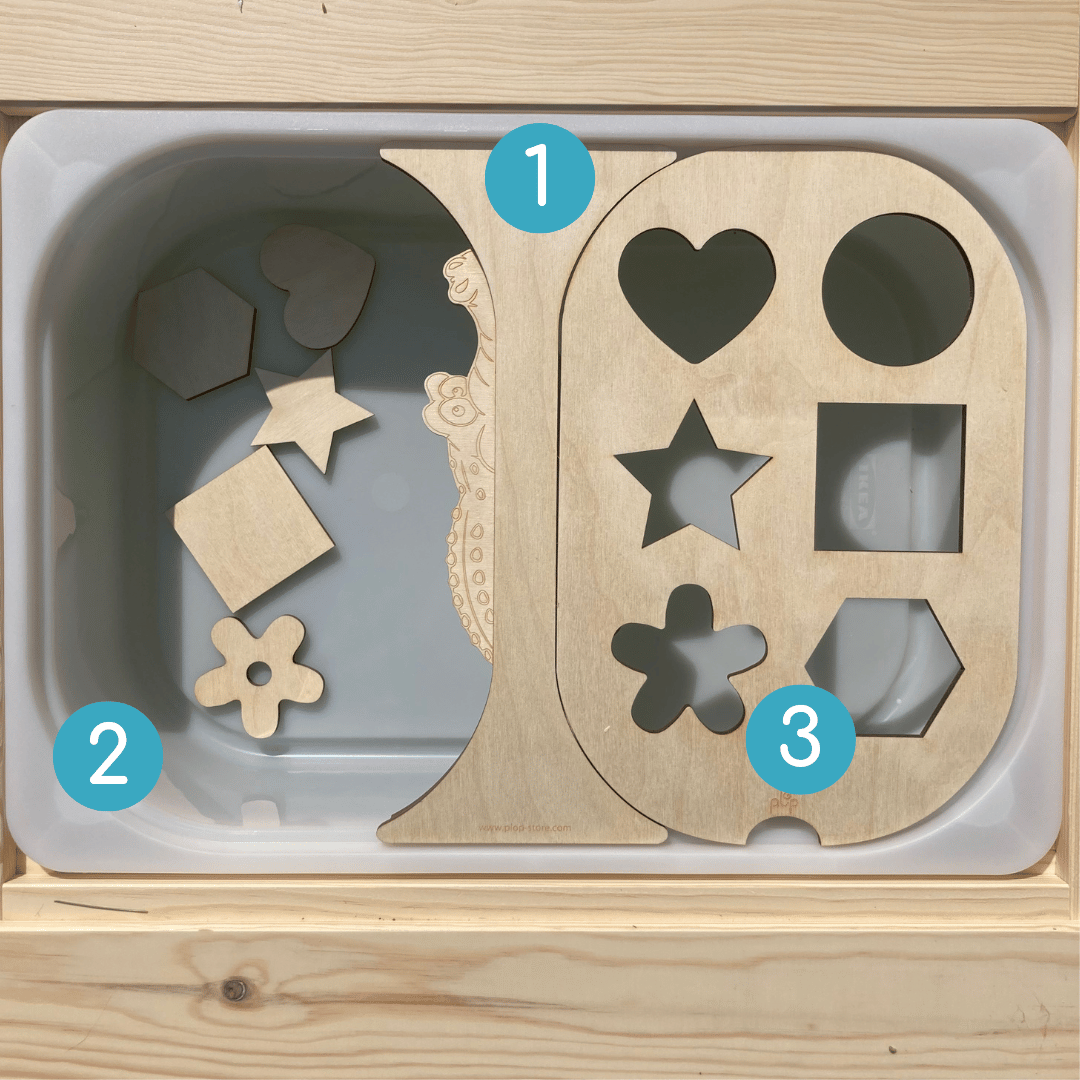 Disposez votre (ou vos) planche de jeu préférée (3) sur le bac Ikea Trofast (2), et lié deux planches grâce à votre adapteur (3) croco ! En quelques secondes, votre enfant peut apprendre en s'amusant.